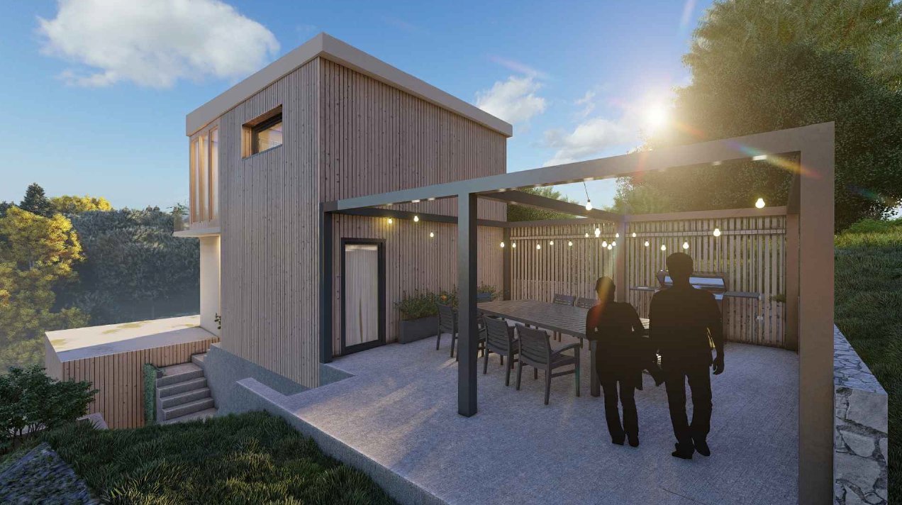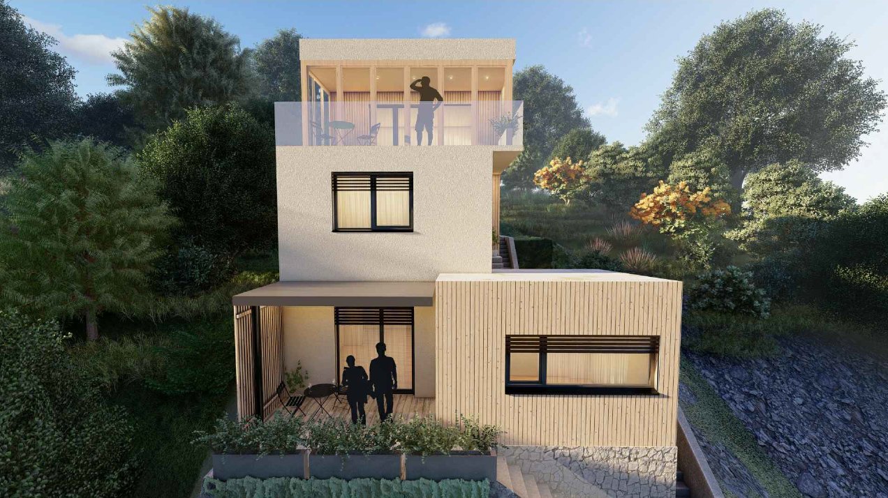 ▪ Základní popis nemovitosti: Jedná se o projekt samostatně stojícího objektu určeného k přestavbě na tři malometrážní byty s celkovou užitnou plochou cca 102 m2. Na každém podlaží bude jeden byt. Celková výměra pozemku je 565 m².
