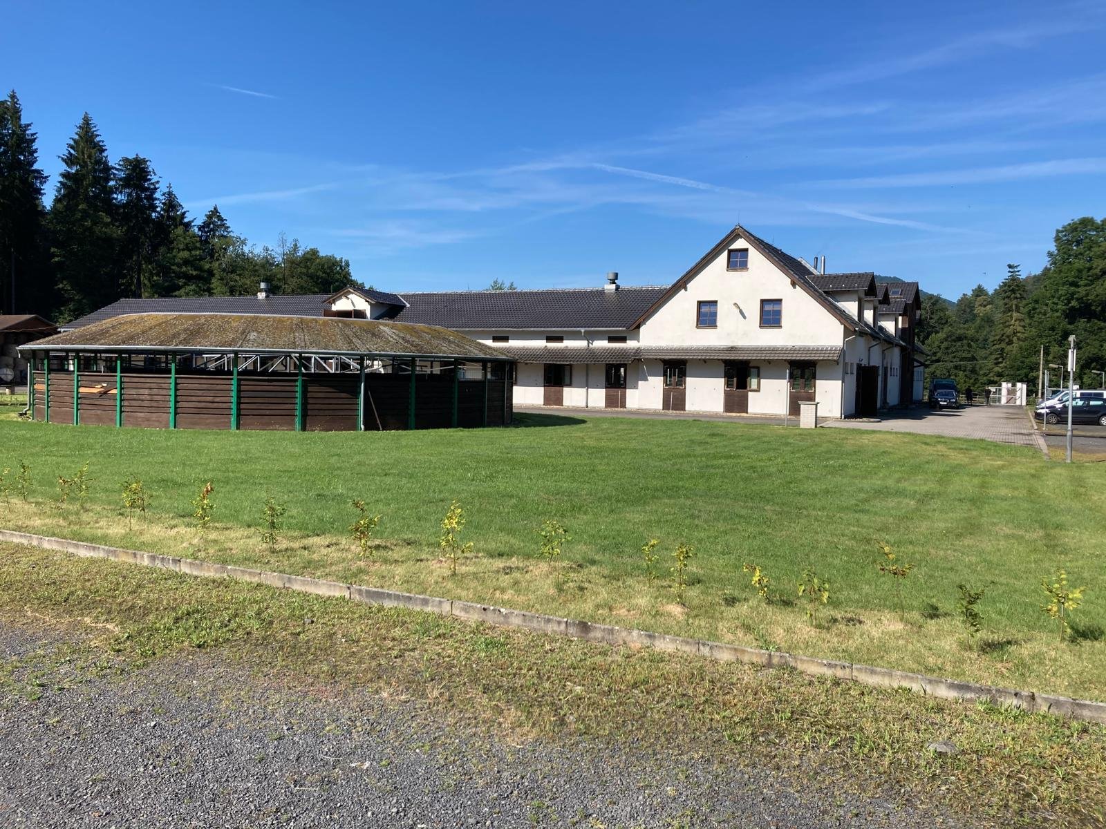 • Základní popis nemovitosti: Areál pro ustájení, chov a trénink koní je tvořen stájemi, krytým cvičištěm s kolotočem a pozemky o výměře cca 67 tis m2. Areál je rekonstruován.